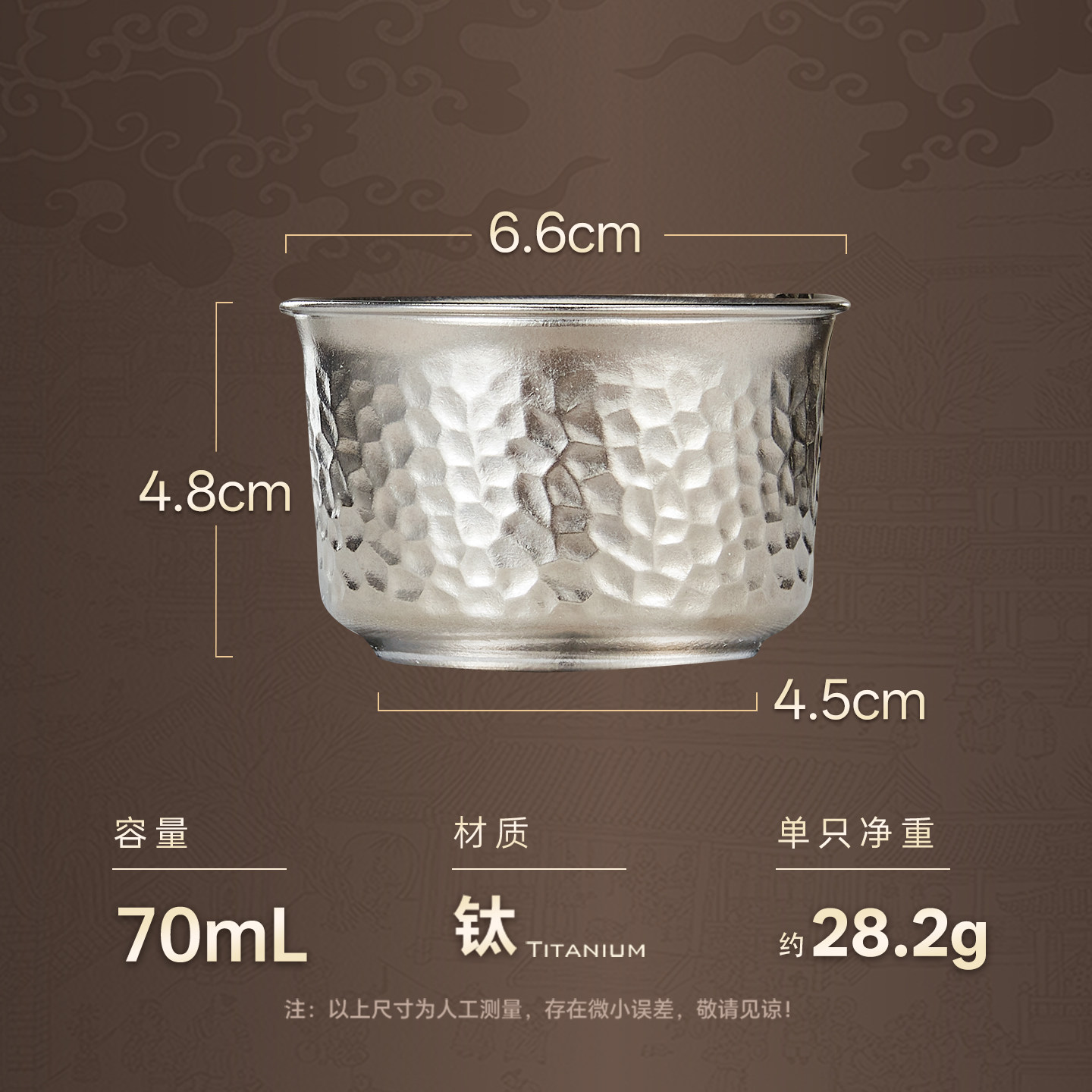 金灶T-35F纯钛茶杯主人杯户外便携功夫小茶杯家用双层防烫品茗杯