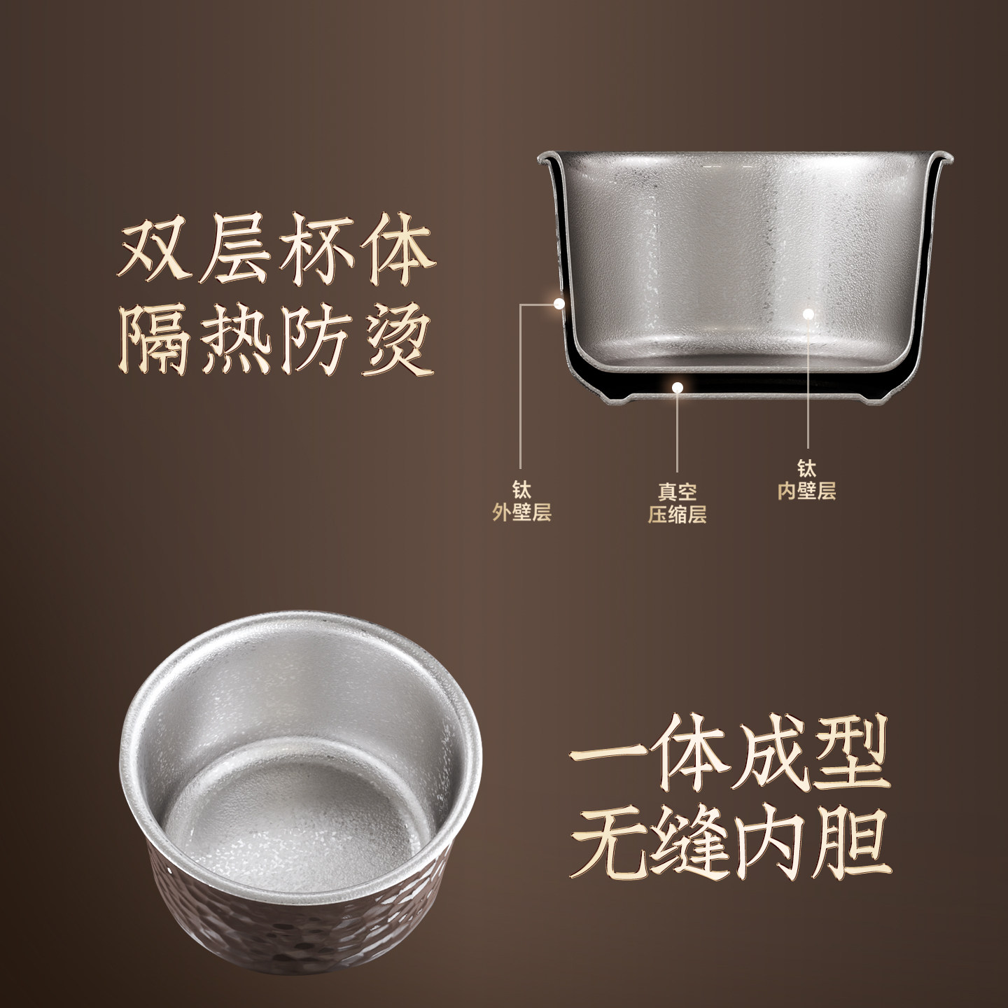 钛材质 轻盈坚韧久用如新 一体成型无缝内胆
