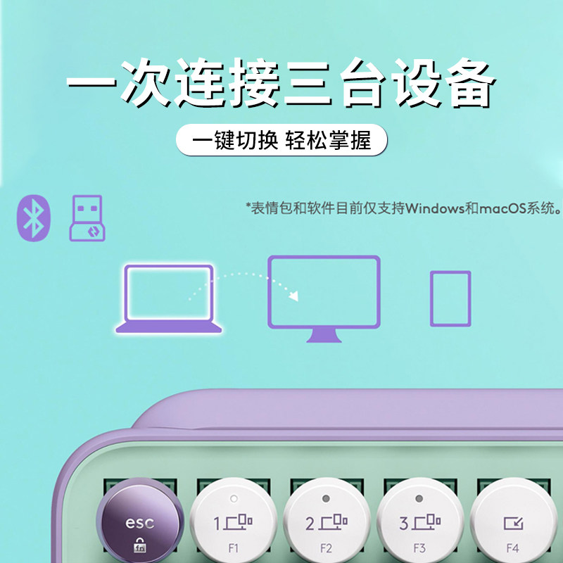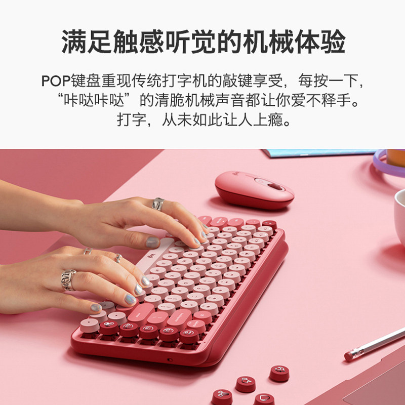 罗技时尚系列POP Keys无线蓝牙机械键盘女生办公游戏键盘电脑平板