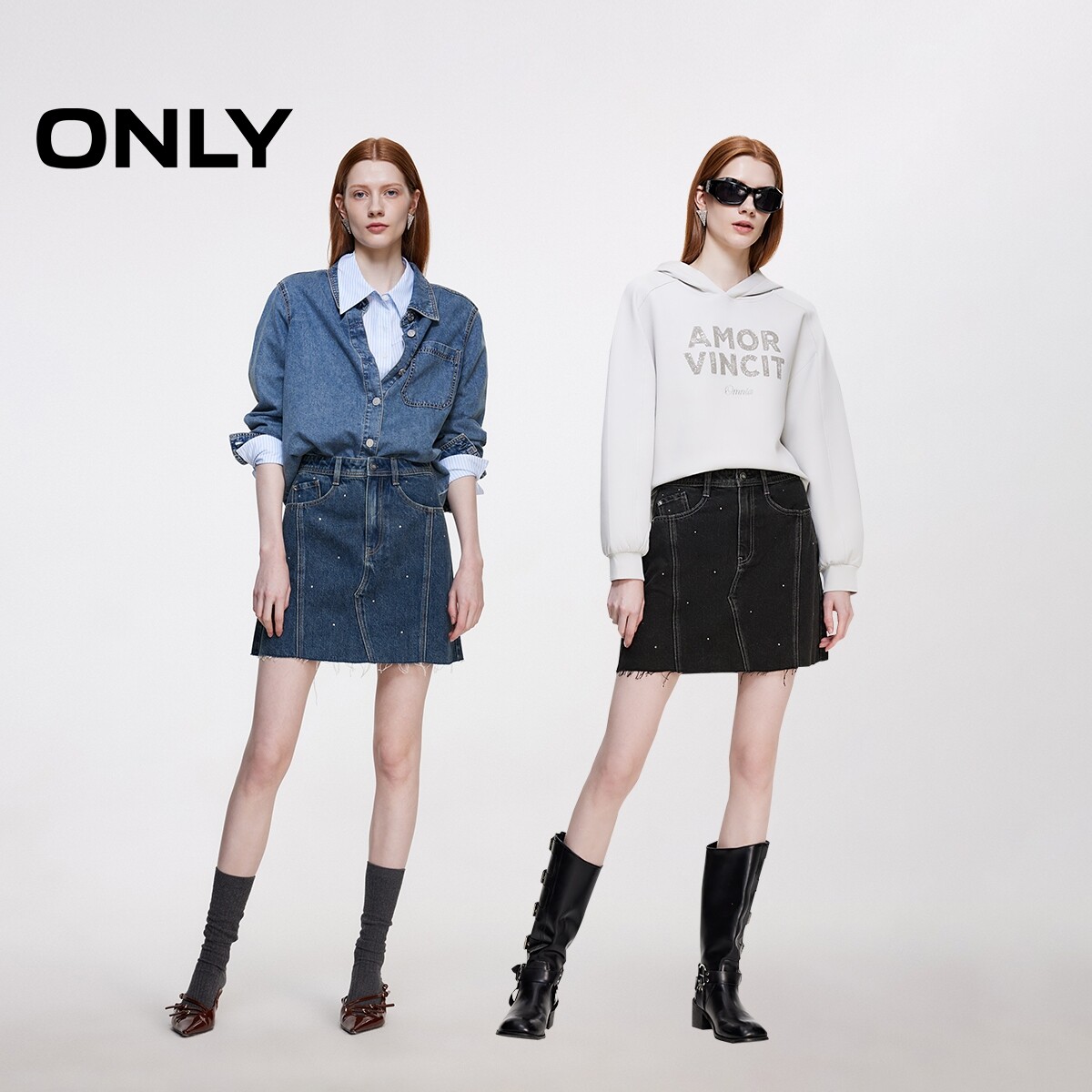 【ONLY奥莱】春夏新款时尚口袋毛边A字短裙牛仔半身裙女