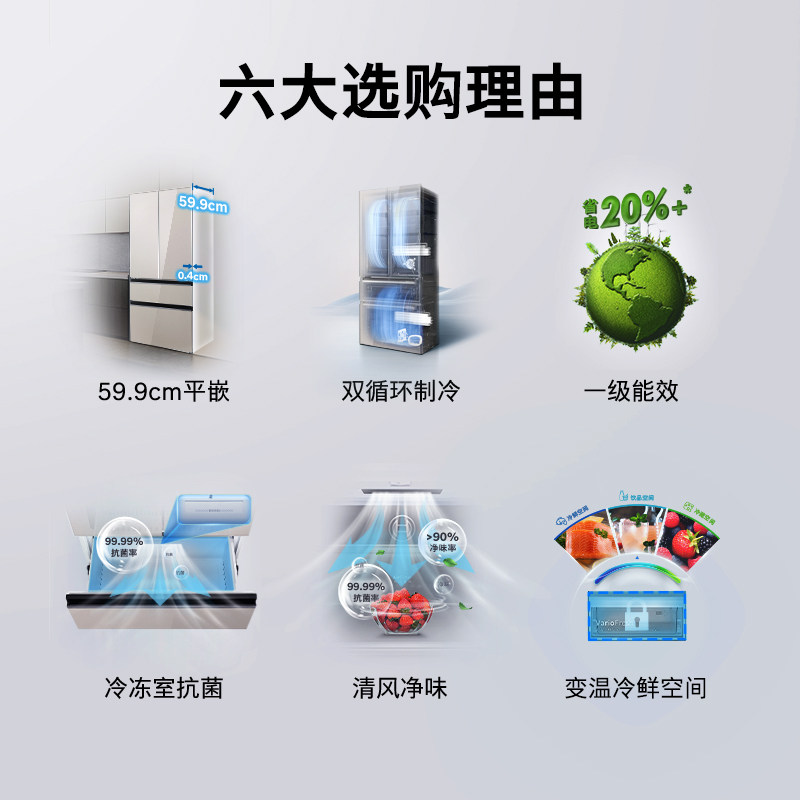【政府补贴】博世F8s拿铁白504L超薄平嵌双系统循环法式多门冰箱