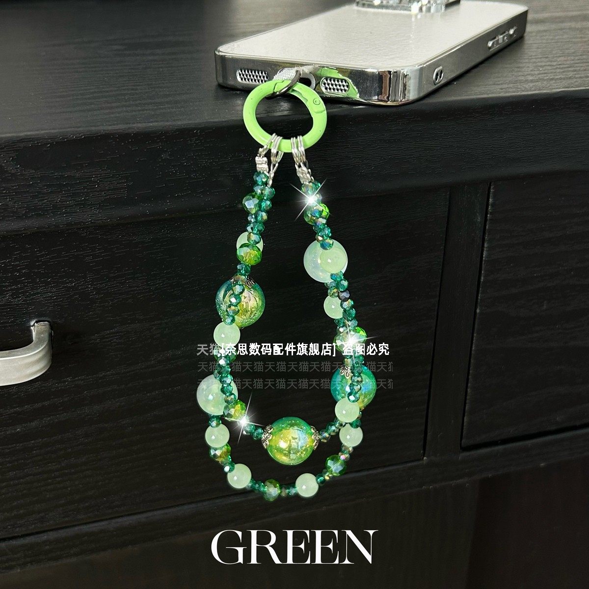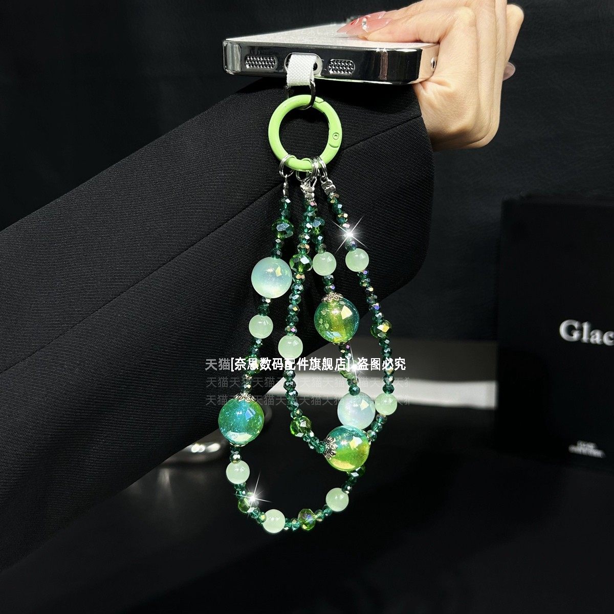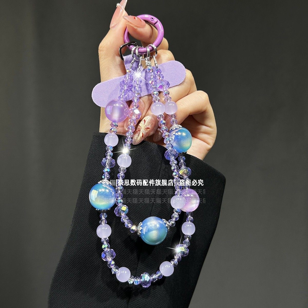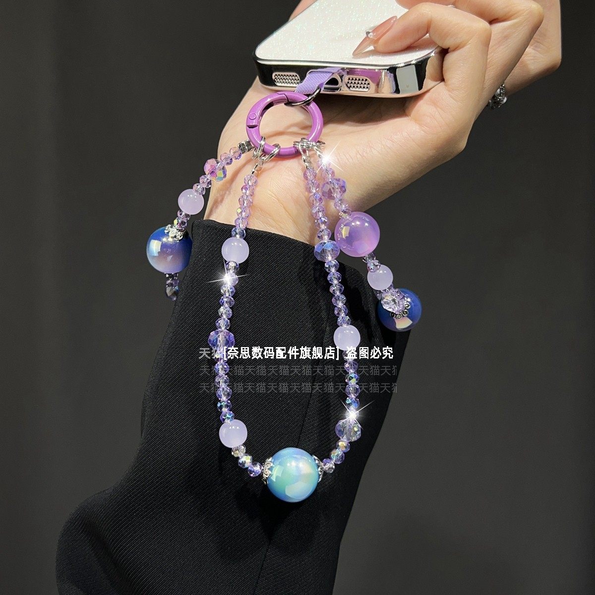 轻奢小众双层手机链透亮水晶串珠挂链手腕式精致女款手链夏日紫绿色冰透珠子链条防丢挂饰包包钥匙扣挂件夹片
