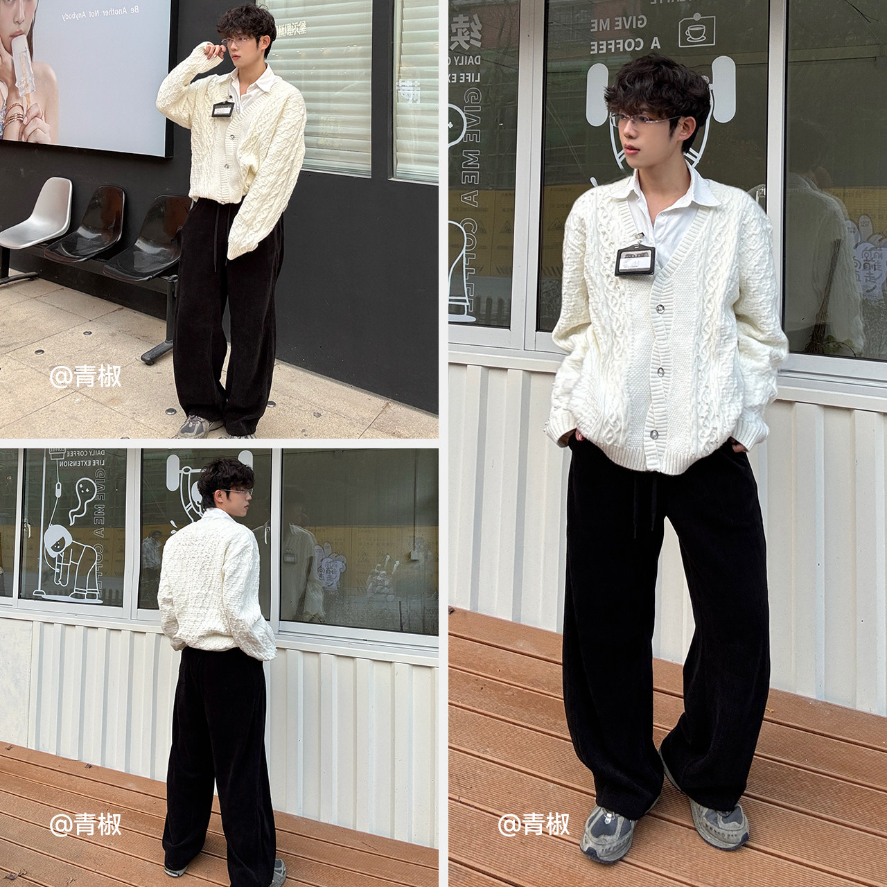 肌理感灯芯绒长裤 宽松直筒休闲裤