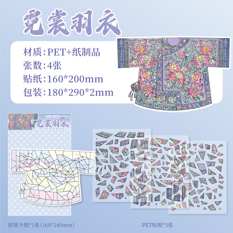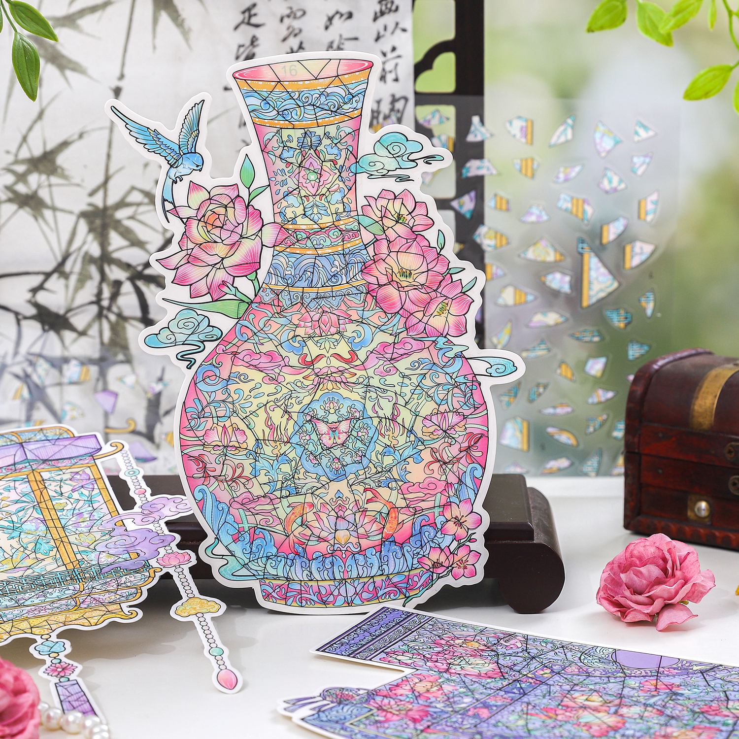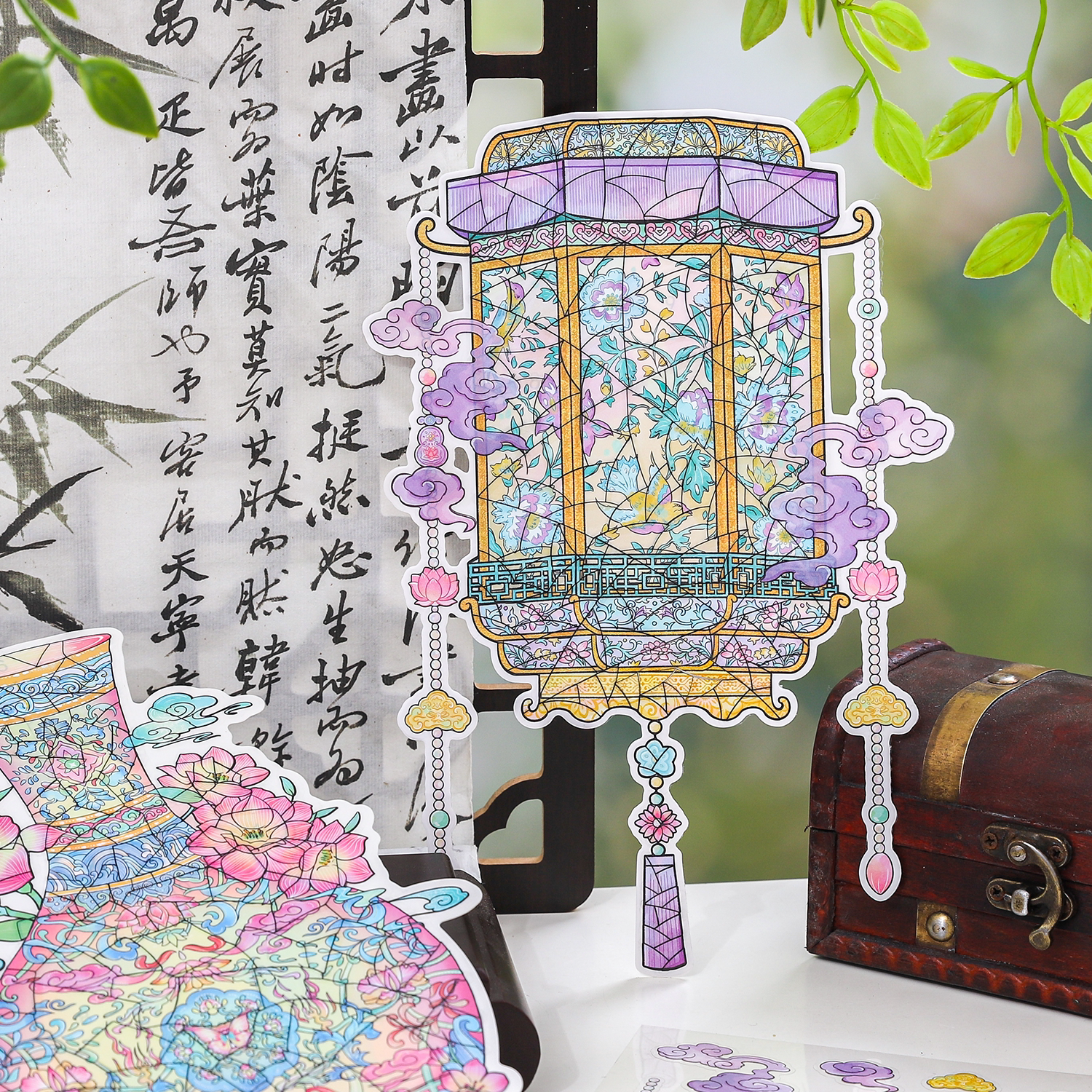 纸迹历史痕迹系列造景贴纸超大版旧物模拟修复拼图瓷器贴画釉彩流光荷花宫灯古风微缩场景3D立体小屋贴画大号