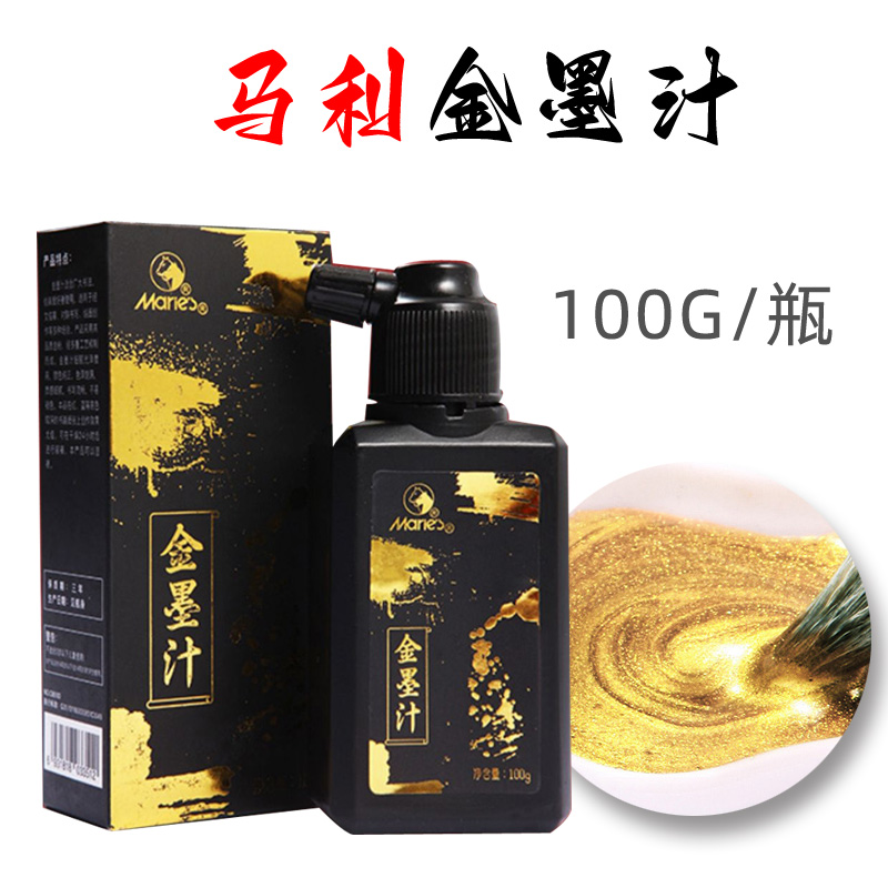 马利墨汁金墨毛笔墨水毛笔墨汁国画墨汁书画墨汁国画专用墨汁小瓶墨汁轻胶墨汁大瓶墨汁黑墨汁