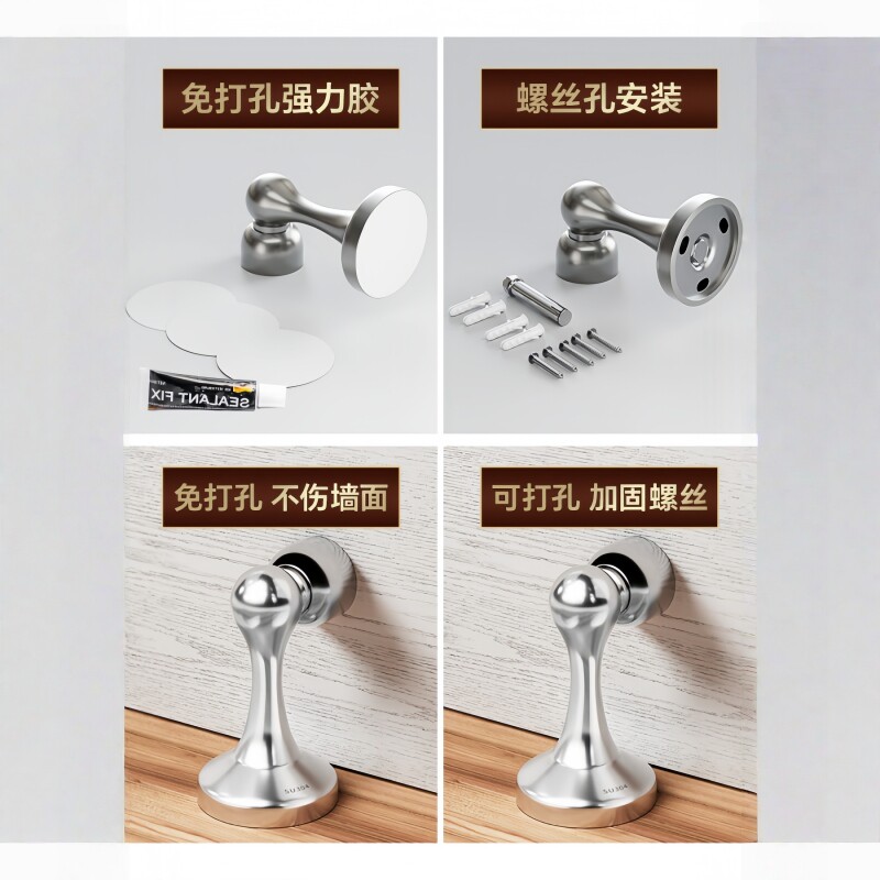 门吸免打孔新款304不锈钢强磁吸门阻器卫生间防撞门碰门挡器地吸