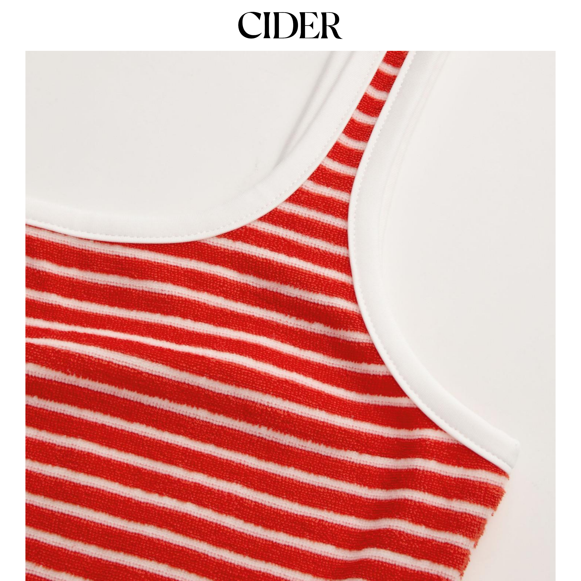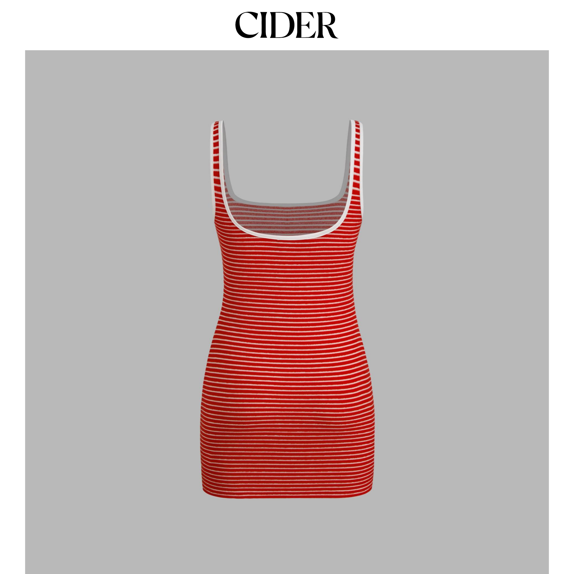 CIDER 夏季女装撞色镶边条纹U领迷你连衣裙114638744