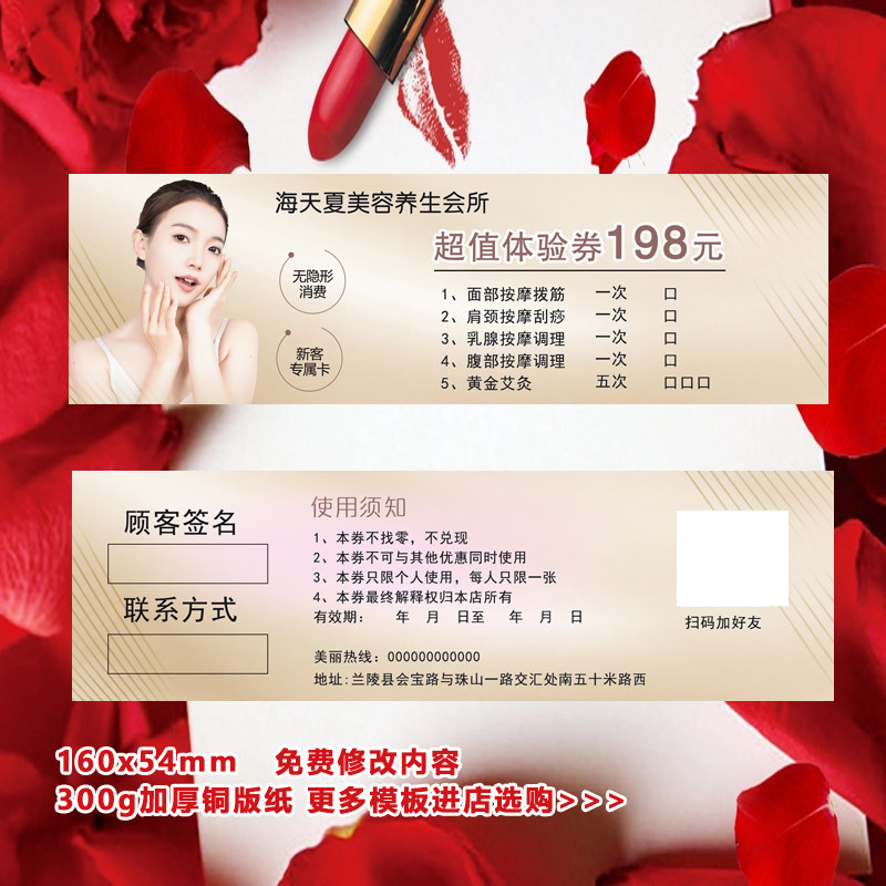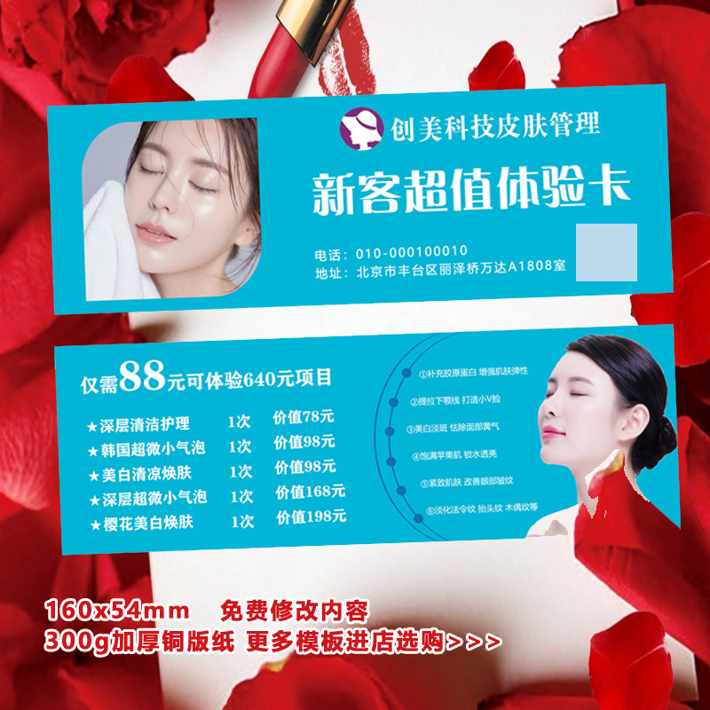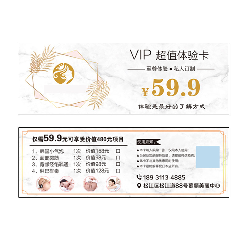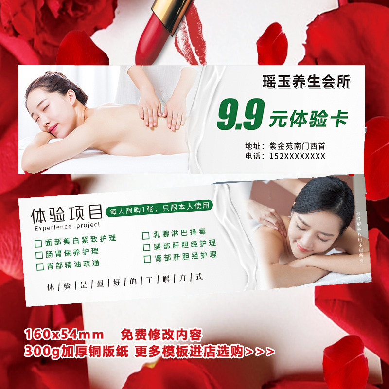 美容养生新客体验卡背部面部身体护理按摩清新绿拓客名片设计印刷