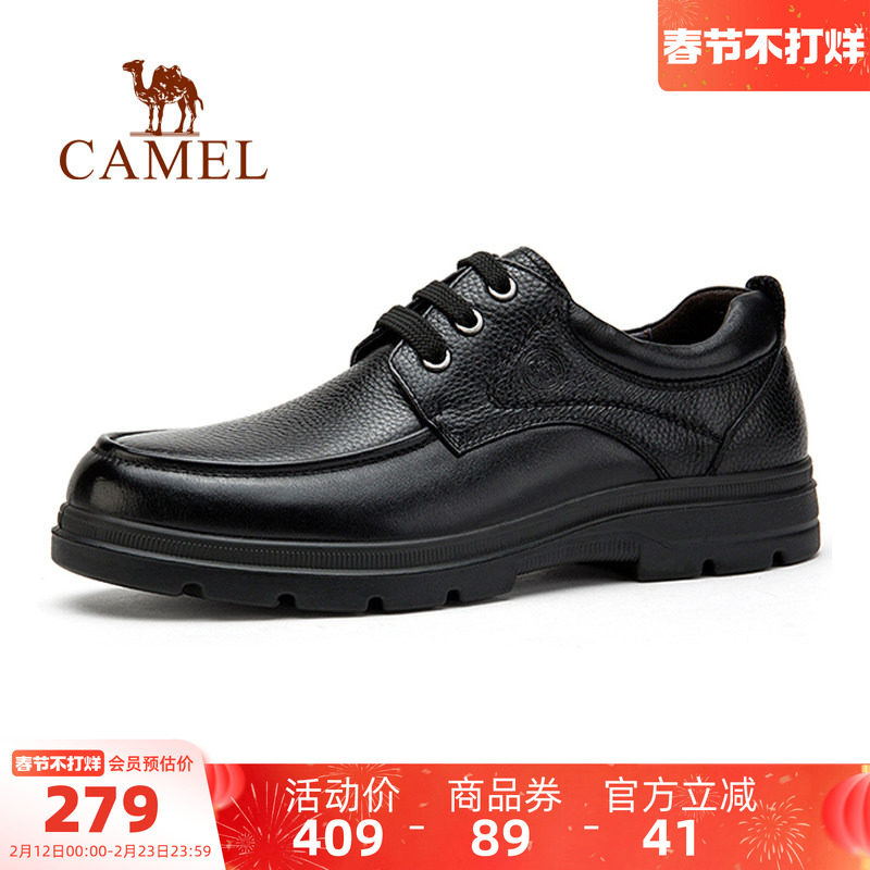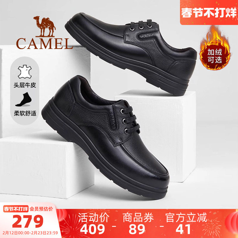 骆驼官方店男鞋2025秋冬新款休闲皮鞋男士真皮软底商务加绒爸爸鞋