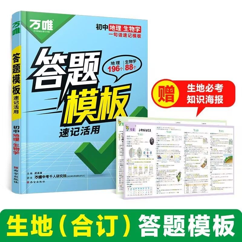 2026万唯初中答题模板速记政治历史地理生物知识点活用生地考点试卷核心