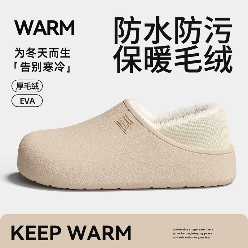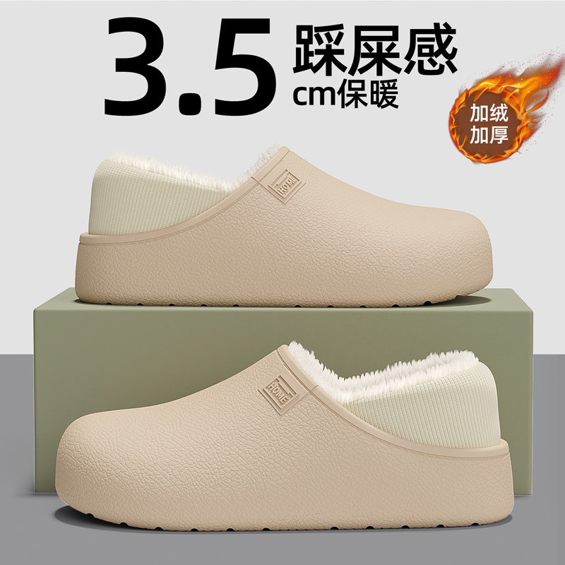 防水棉拖鞋女冬季2025新款室内家居外穿防滑包跟加绒保暖棉拖情侣