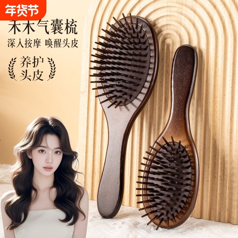 檀木气囊垫梳子蓬松颅顶专用头发皮按摩经络防静电气垫头部便携
