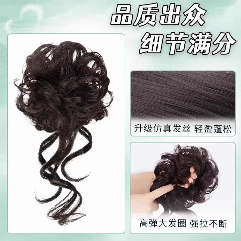 低扎丸子头假发鸡毛头抓夹盘发发包慵懒感造型头饰自然蓬松后脑勺