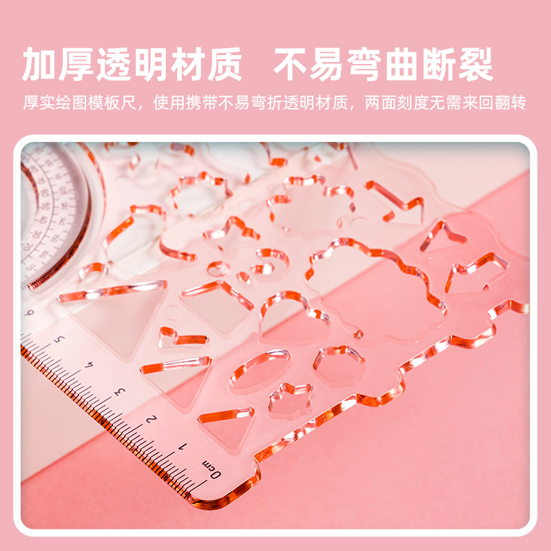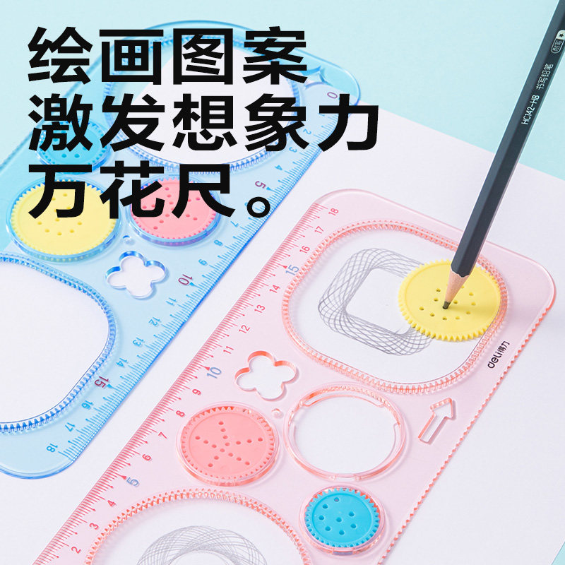 得力万花尺小学生多功能尺子手抄报模板专用百变学习套装一二年级几何图形绘画画图软直尺镂空工具神器文具