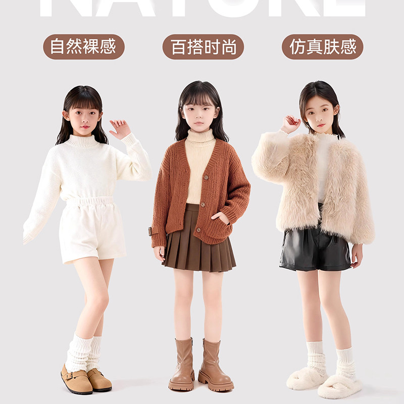 儿童光腿神器秋冬加绒女孩肤色连裤袜丝袜冬季加厚女童肉色打底裤