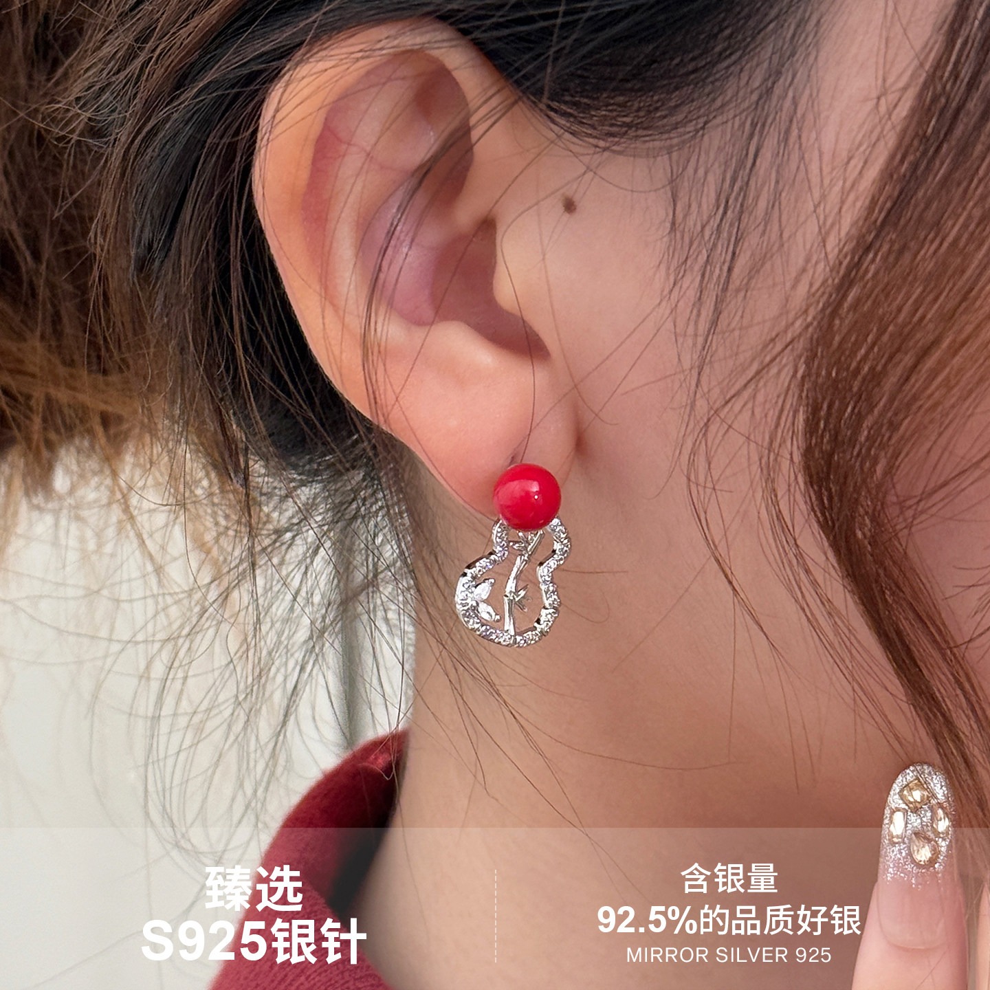 fever同款珍珠耳钉999纯银施家耳环2025新款爆款高级轻奢正圆耳饰