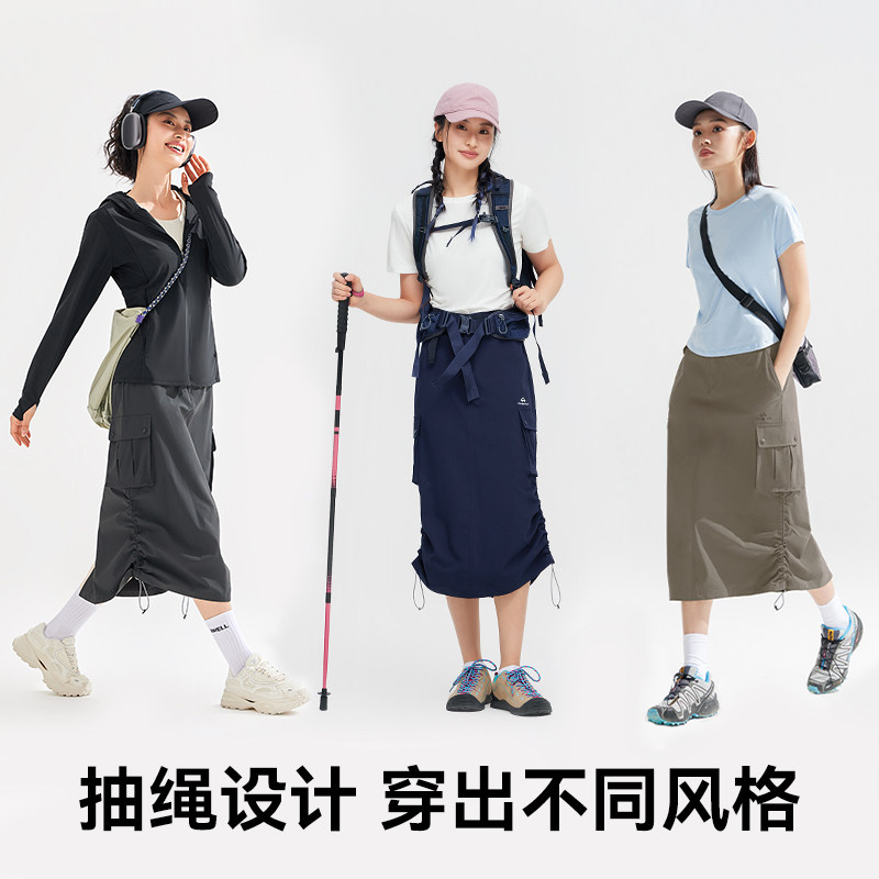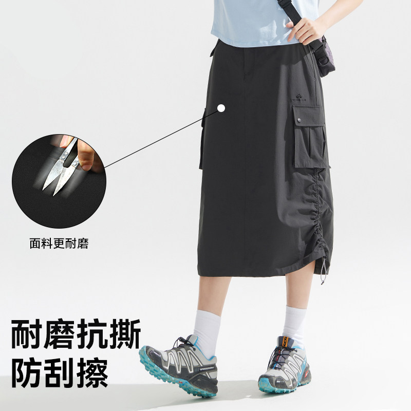 拓路者春夏新款工装口袋抽绳半身裙女宽松高腰显瘦中长款速干裙子