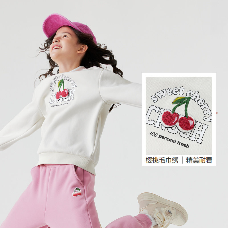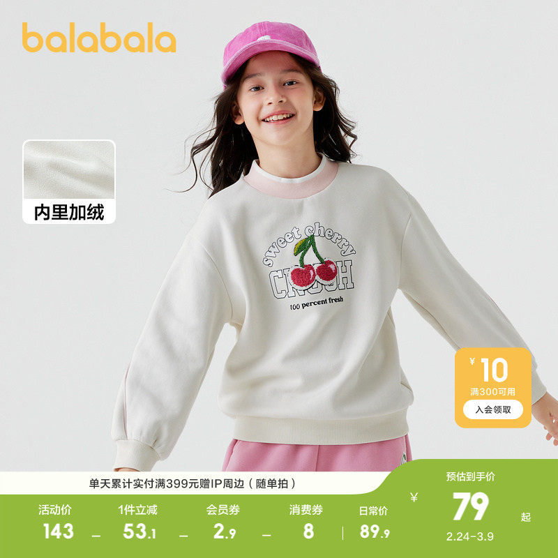 巴拉巴拉女童儿童卫衣加绒保暖秋冬中大童毛巾绣内搭上衣甜美洋气