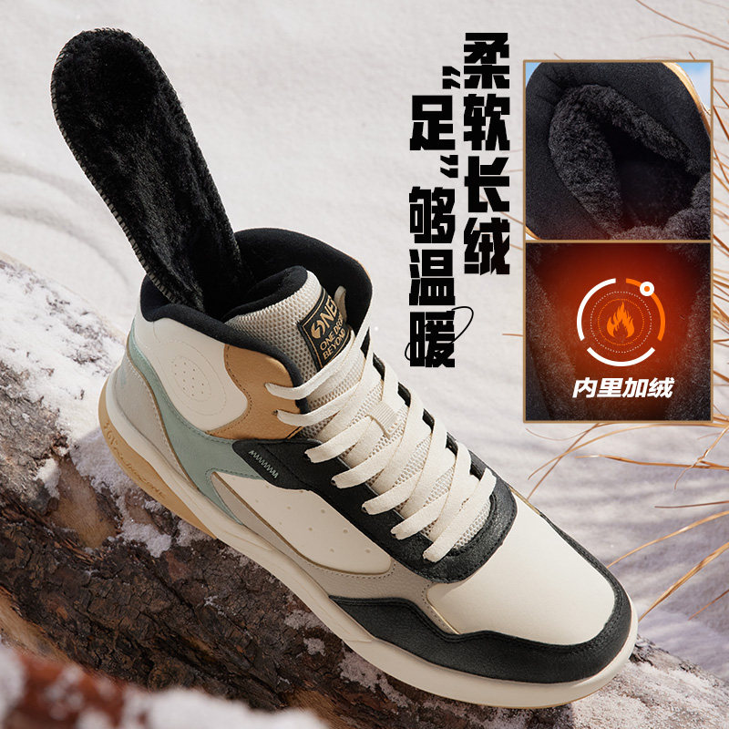 361度男鞋运动鞋冬季皮面鞋子正品加绒保暖休闲鞋棉鞋高帮板鞋男