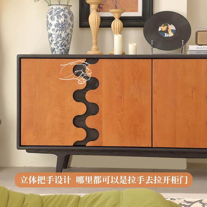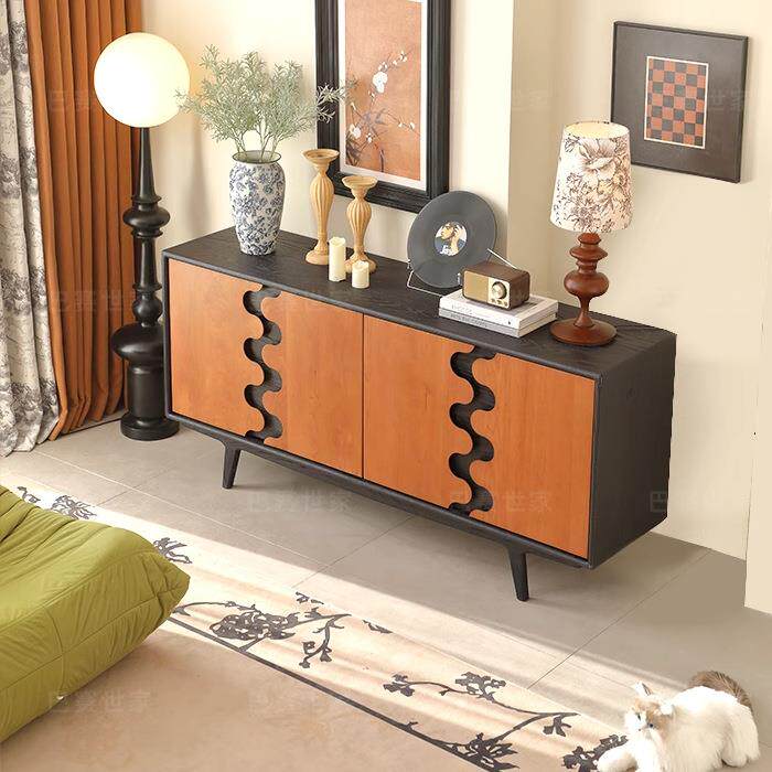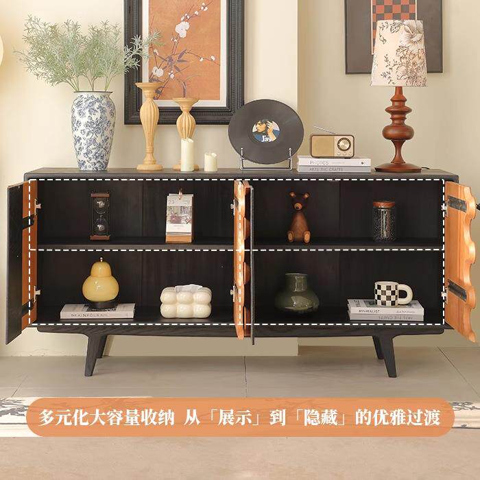 法式中古风斗柜餐边柜复古边柜客厅靠墙置物柜收纳柜白蜡木储物柜