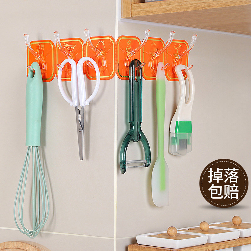 六连排挂钩免打孔衣帽钩门后强力粘钩无痕粘钩厨房浴室挂钩架承重