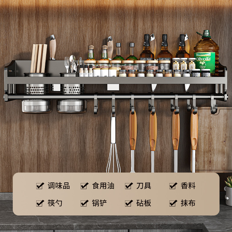 厨房置物架多功能壁挂式家用调料品架子墙上免打孔收纳挂钩架筷子