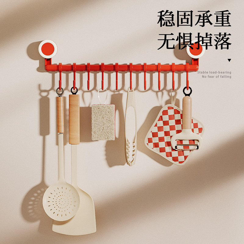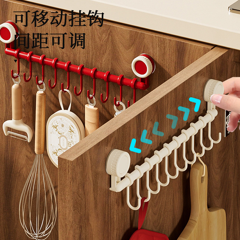 橱柜门后挂钩一排可滑动轨道免打孔粘挂杆神器勺子铲子厨具收纳架