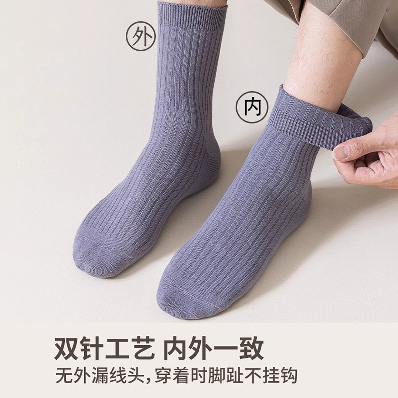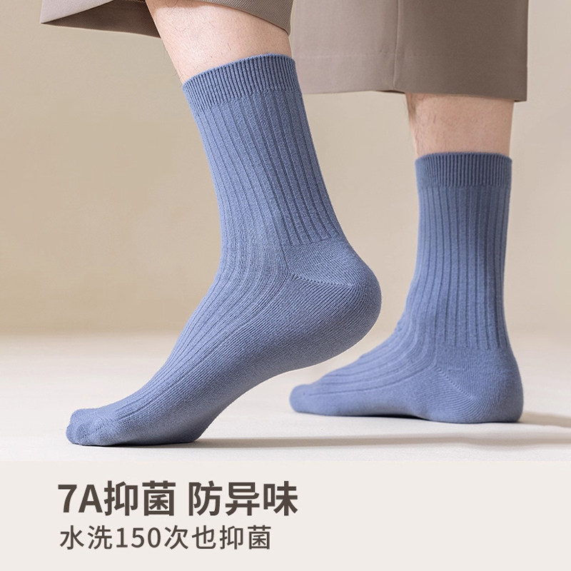 袜子男款秋冬季防臭吸汗中筒袜新疆棉纯色棉袜春秋款男士运动长袜
