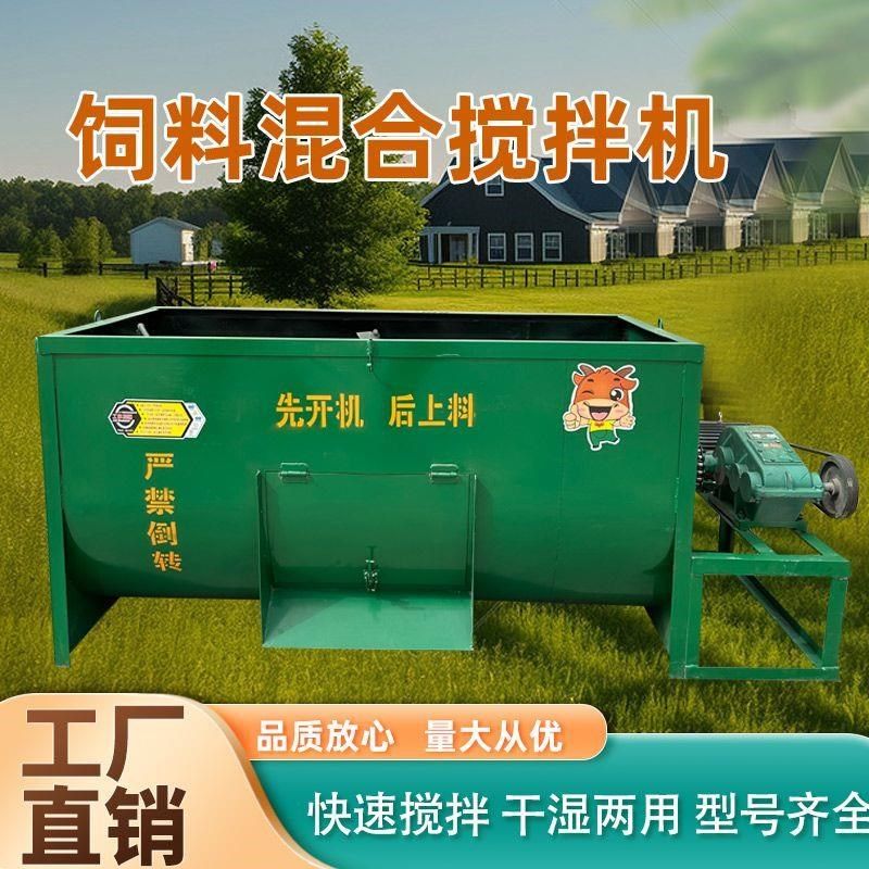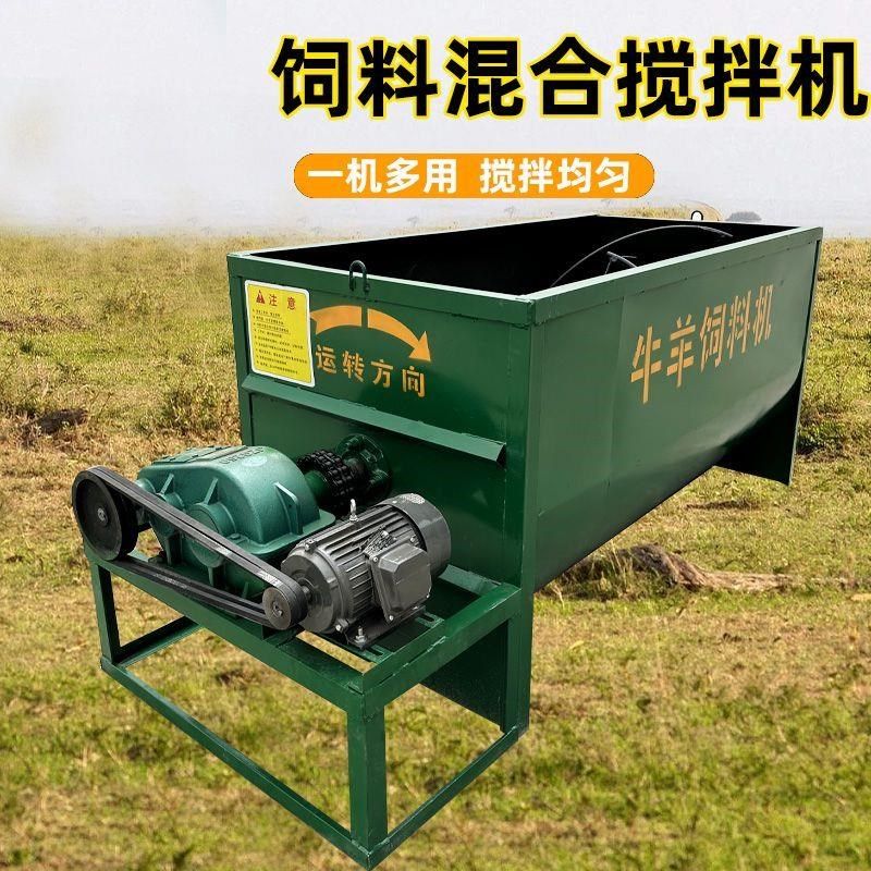 新款卧式牛羊用电搅拌机家湿两用干饲料草料混合机小型拌草机