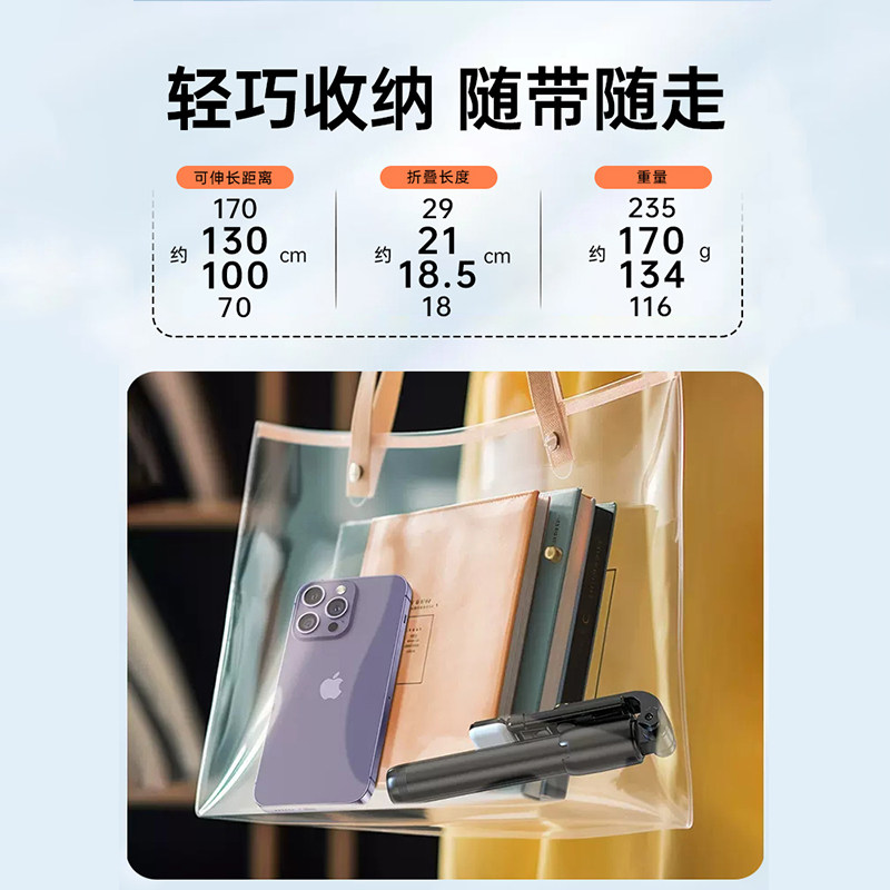 品胜小轻自拍杆迷你旅游便携2025新款通用手机自拍神器360度旋转落地三脚架手持mini蓝牙超轻自拍vlog拍照24