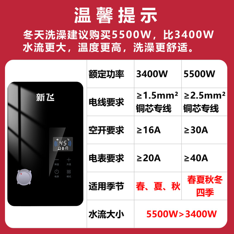 新飞2025新款即热式电热水器家用洗澡卫生间宿舍出租房热水器恒温