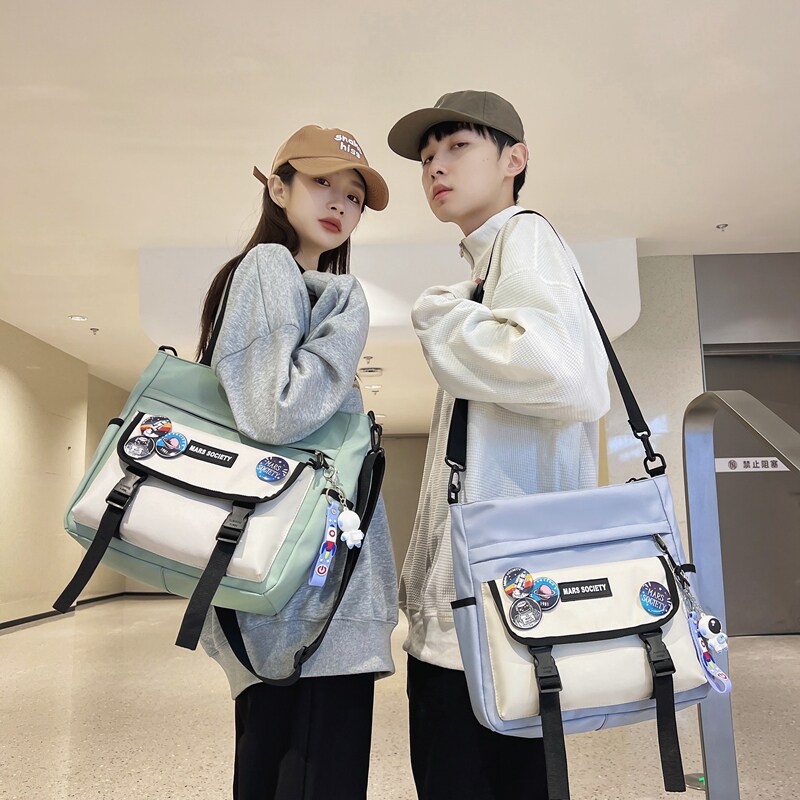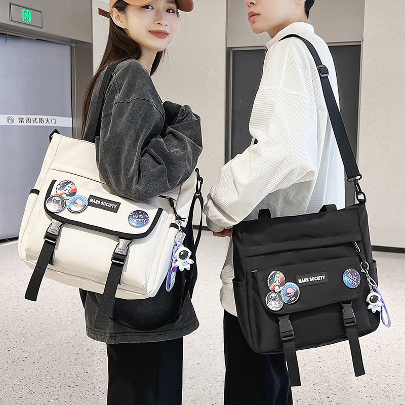 斜挎包男补课袋帆布袋手提包拎袋单肩书包初高中生补习中学生平板
