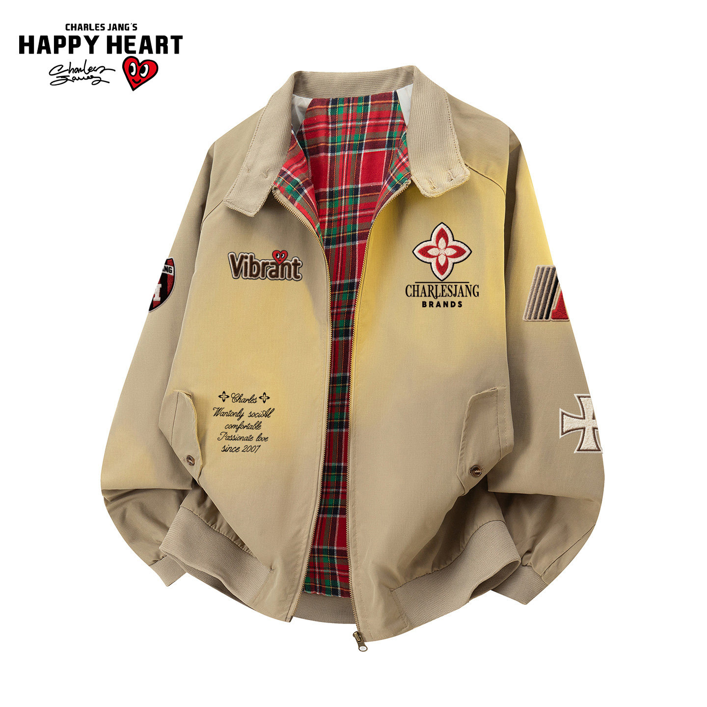 查尔斯桃心美式格纹立领夹克男春秋季新款字母印花情侣教练服外套
