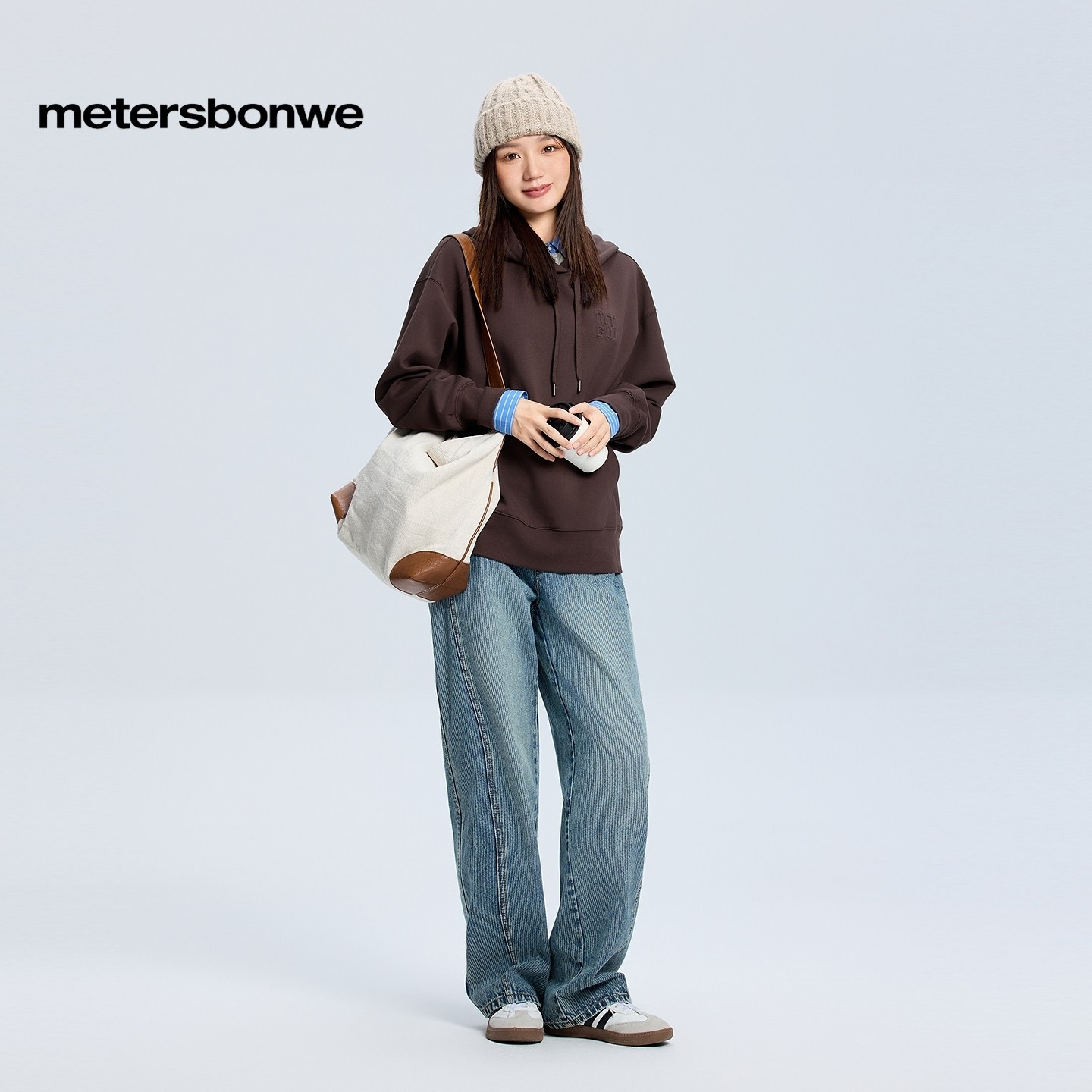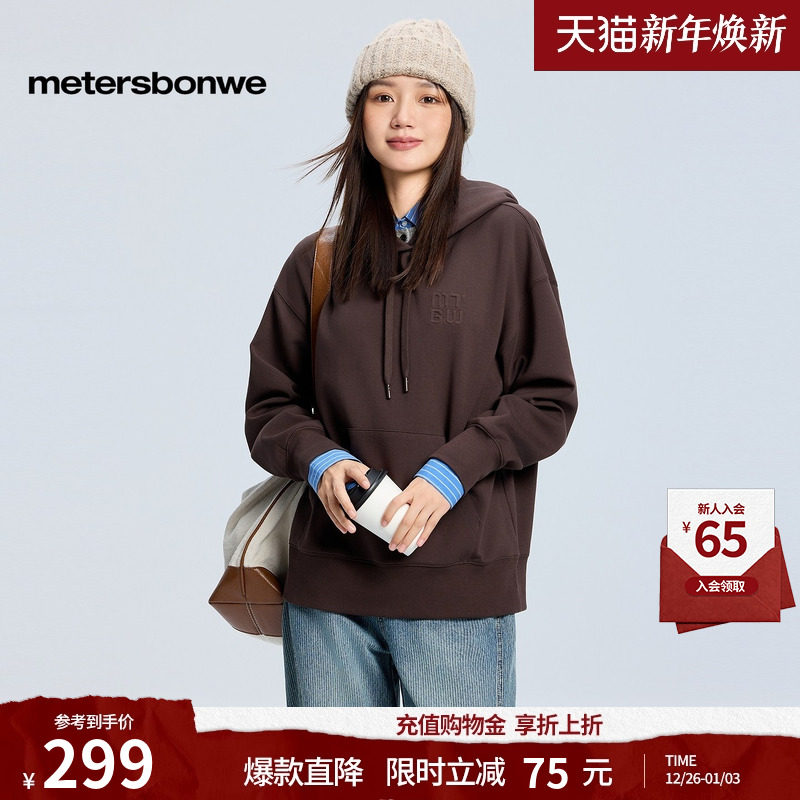 美特斯邦威卫衣女2025冬季新款时尚潮流连帽字母刺绣休闲舒适上衣