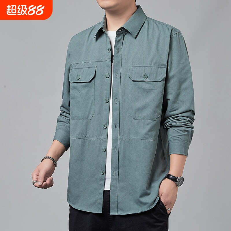 新款长袖港风衬衫男士春季工装翻领上衣服纯棉休闲衬衣外套男帅气