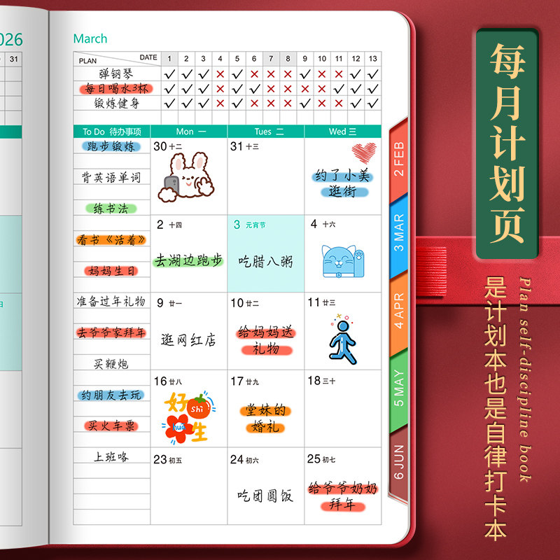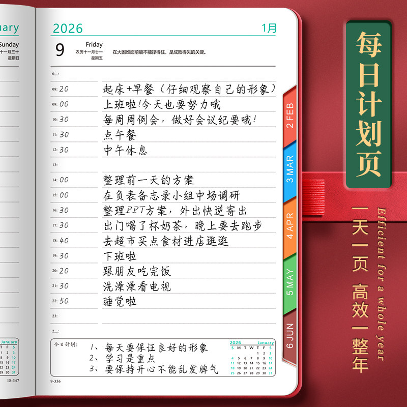 2026年日程本新款计划表365天每日时间管理效率手册大学生日历自律打卡本高颜值记事本文艺精致手账笔记本子
