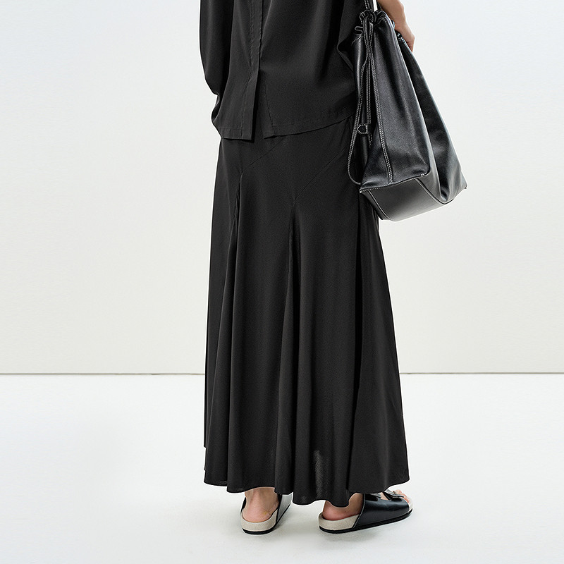 【精工系列】LESS夏季6A桑蚕真丝黑色气质鱼尾半身裙女2P5D13300