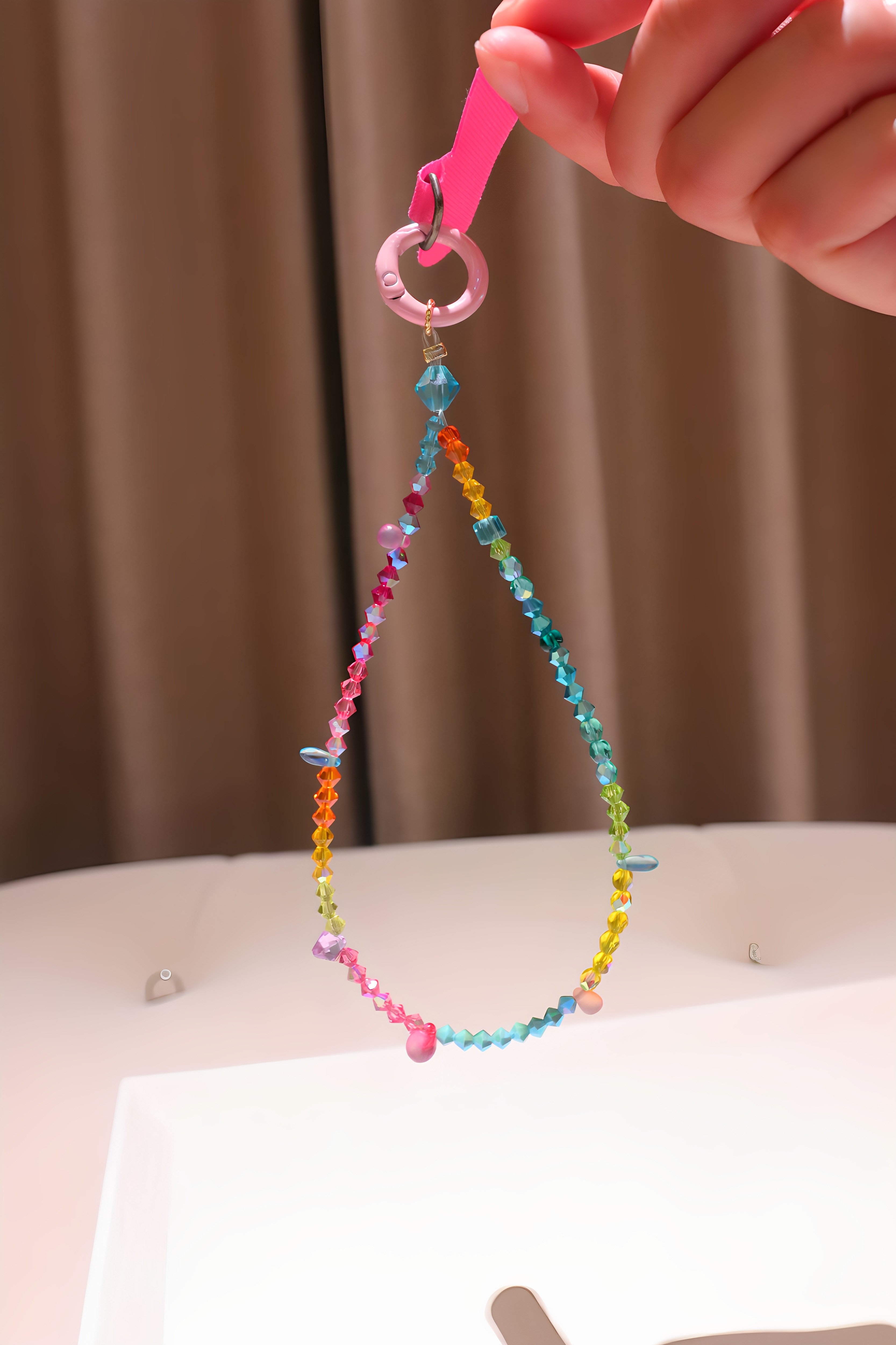 清透感|彩虹渐变施华洛水晶手机链简约百搭饰品挂件手机挂饰