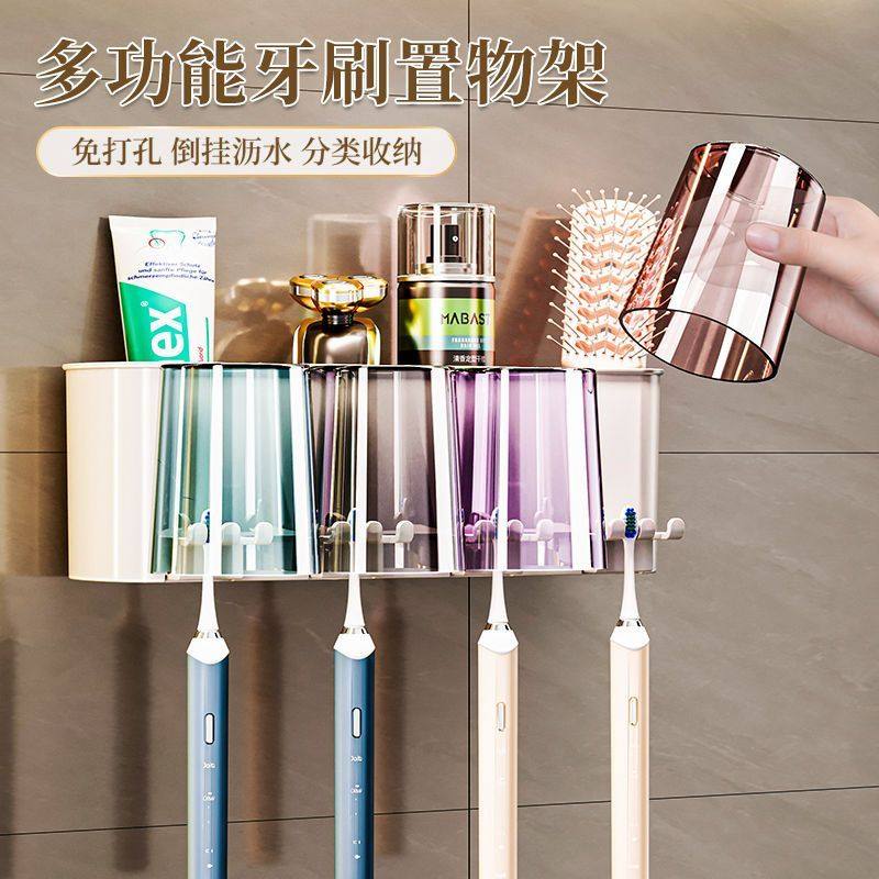 卫生间牙刷置物架电动吹风机支架家庭洗漱台壁挂式漱口杯牙具架子