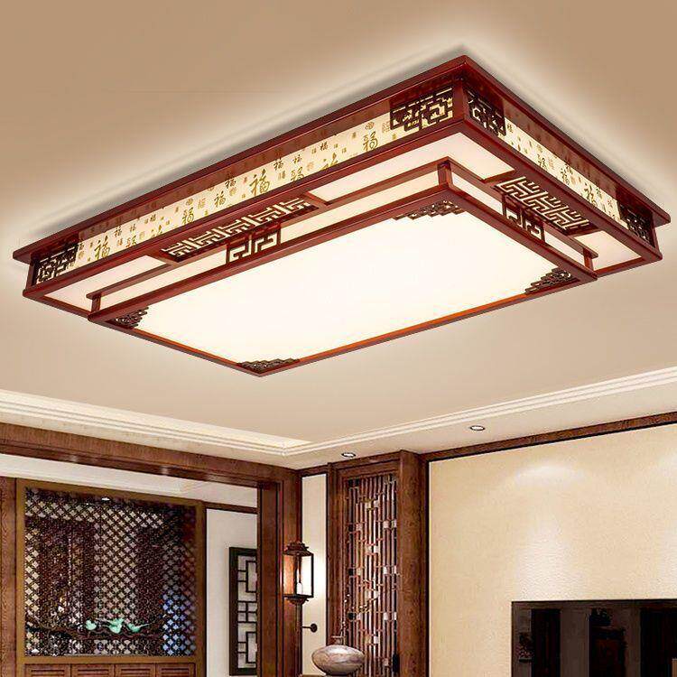 实木新中式客厅灯吸顶灯led长方形大厅灯中国风仿古灯具套餐灯饰