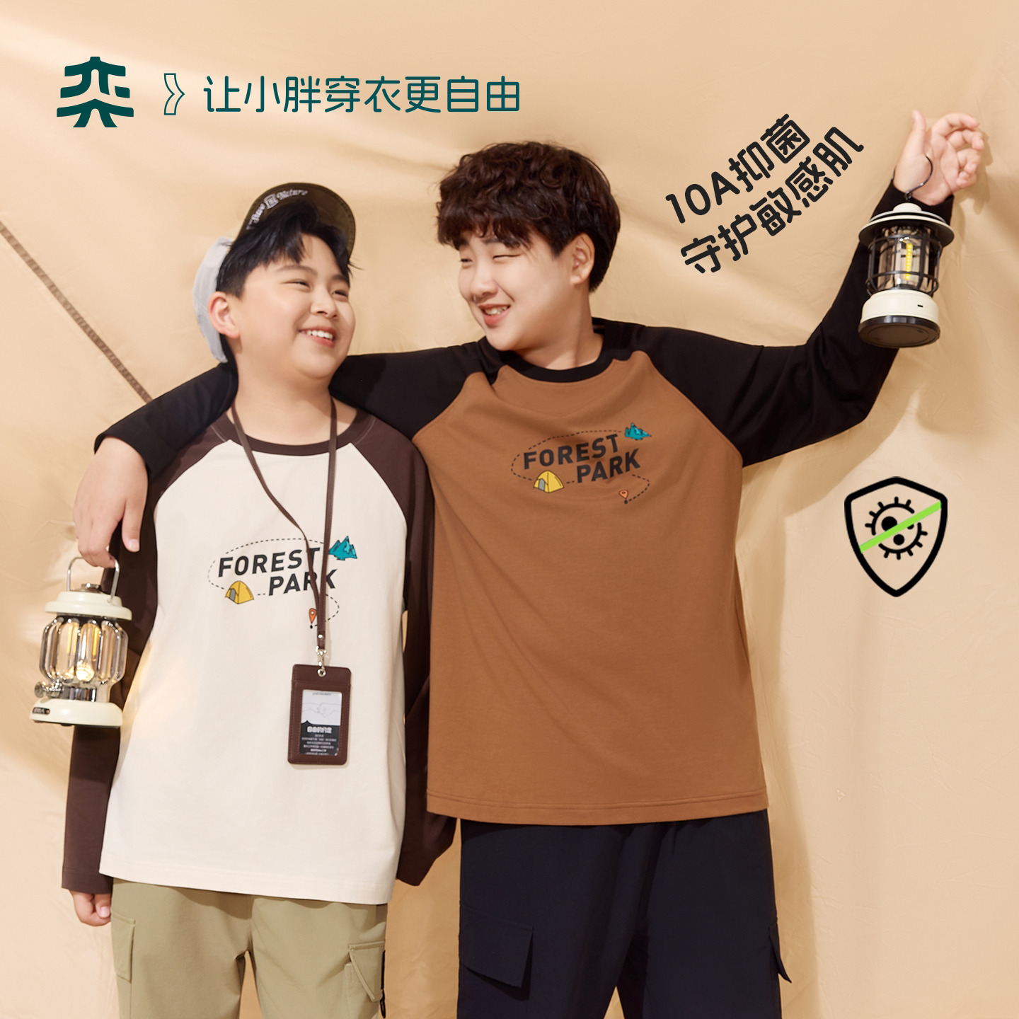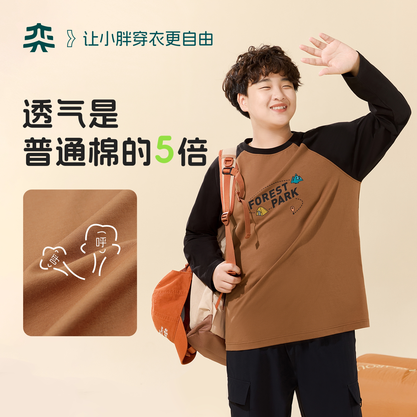 【10A抗菌户外棉T】奕时代男童长袖T恤大童透气打底衫大码童装秋