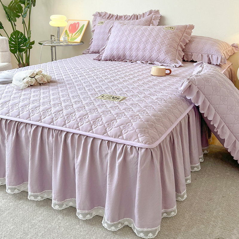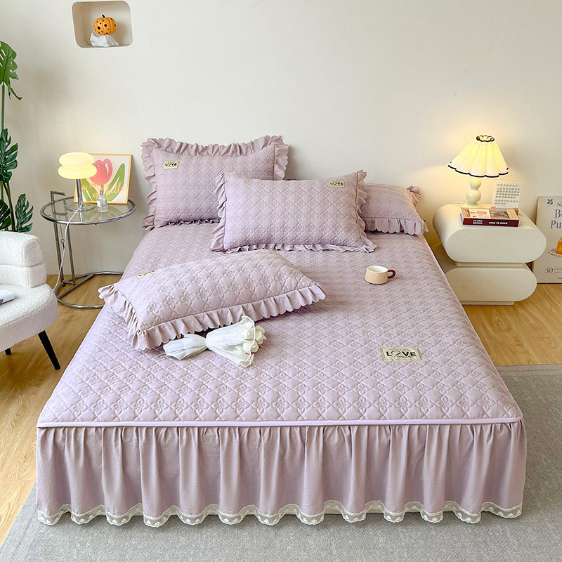 加厚全棉水洗棉夹棉床裙单件纯棉防滑床罩床套裙式床单枕套三件套