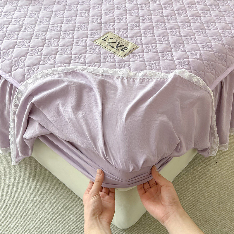 全棉磨毛床裙单件100纯棉床罩床垫保护套加厚花边防滑床单三件套3