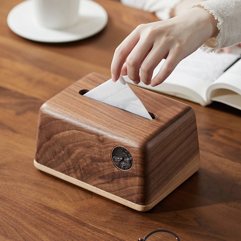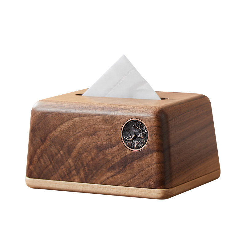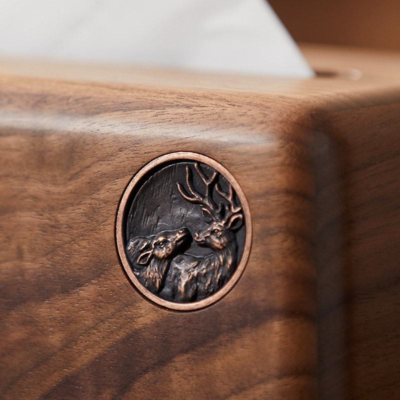 浮雕鹿黑胡桃木纸巾盒家用客厅时尚创意轻奢抽纸纸巾筒实木收纳盒