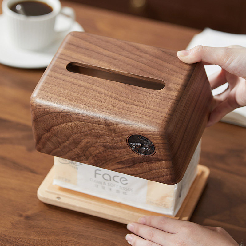 木纹纸巾盒家用客厅轻奢高档中古风抽纸盒高级感复古茶几收纳盒