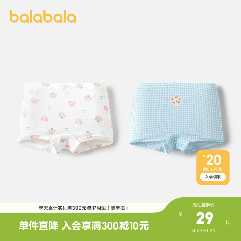 巴拉巴拉女童内裤平角儿童短裤小童甜美莫代尔两条装舒适柔软萌趣