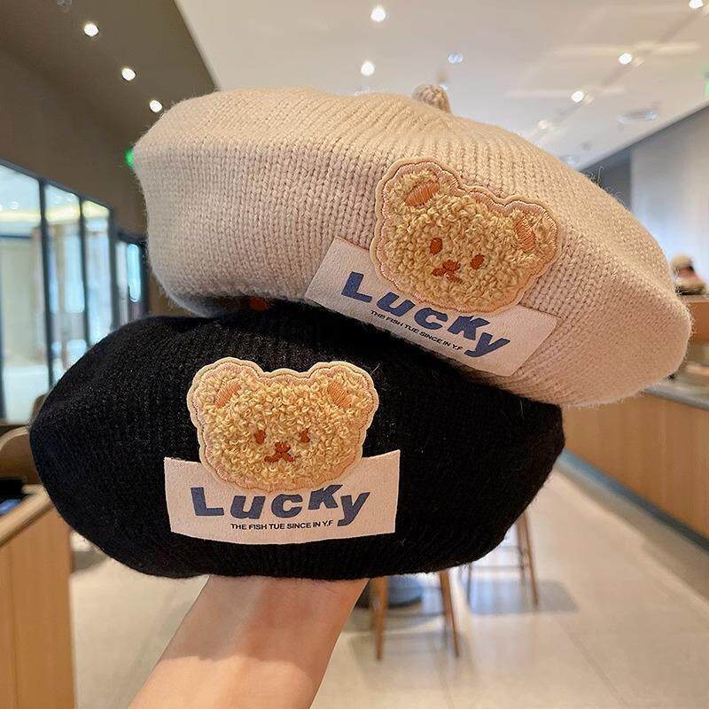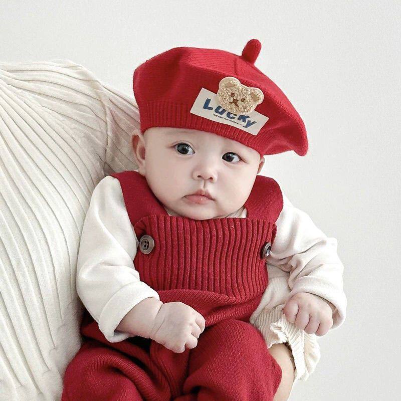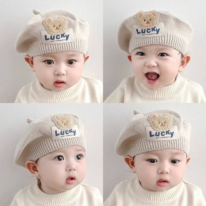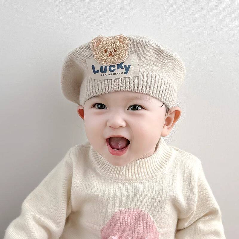 婴儿帽子秋冬季可爱男女宝宝针织毛线帽贝雷帽女童秋季套头帽黑色
