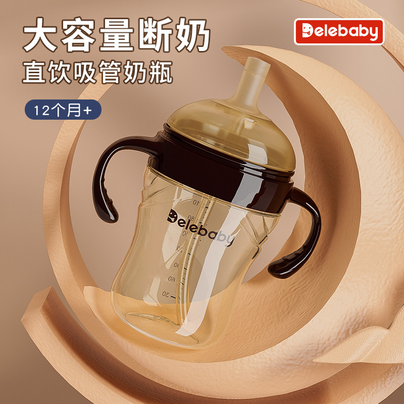 奶瓶PPSU翻盖学饮杯吸管奶瓶1-2-3岁以上大宝宝直饮杯喝水杯婴儿