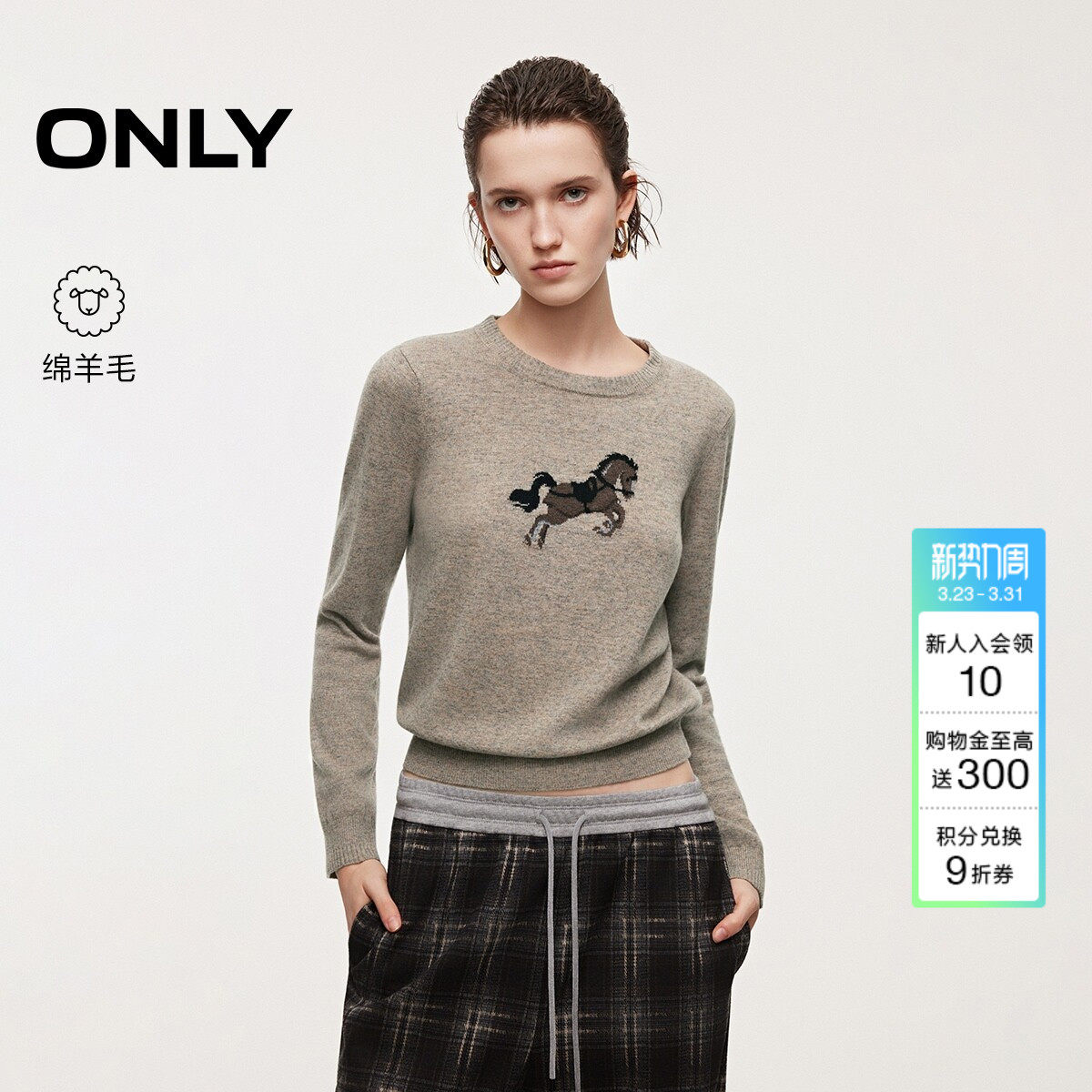 ONLY2026春季新款马年绵羊毛圆领长袖舒适亲肤针织衫毛衣上衣女