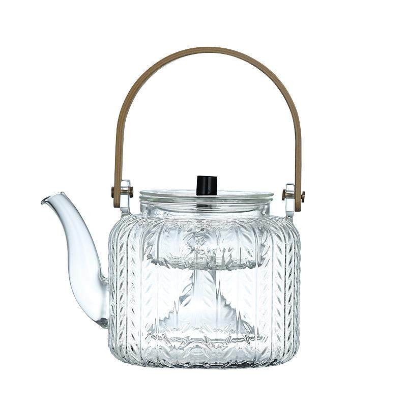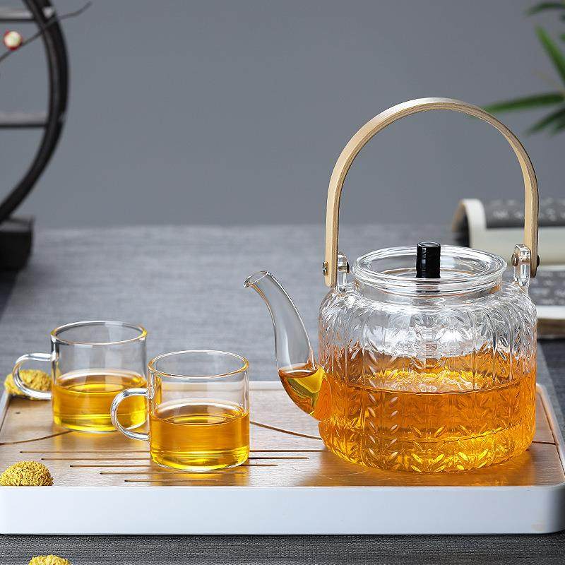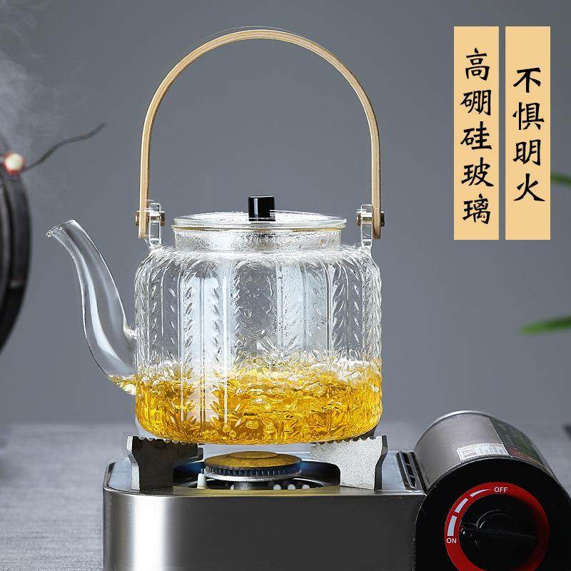 麦穗提梁壶玻璃蒸煮两用烧茶壶普洱家用中式花草煮茶器透明茶壶